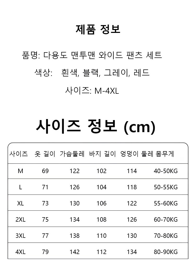 다용도 맨투맨 와이드 팬츠 세트